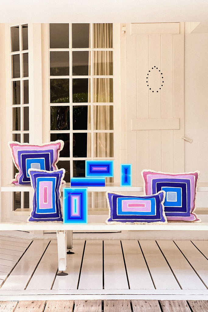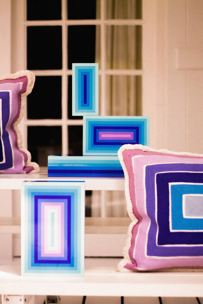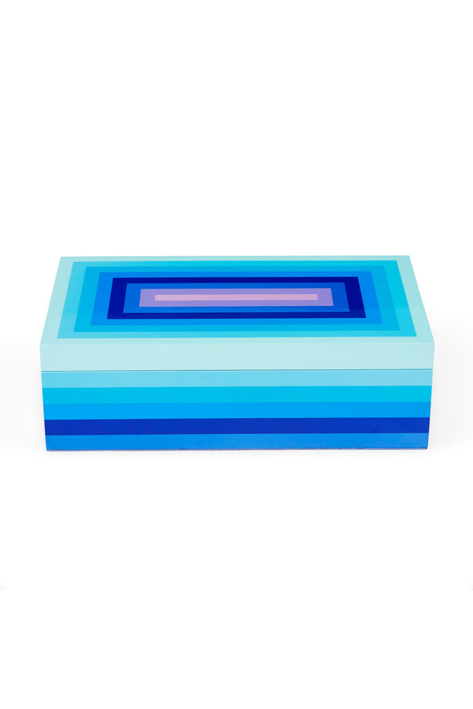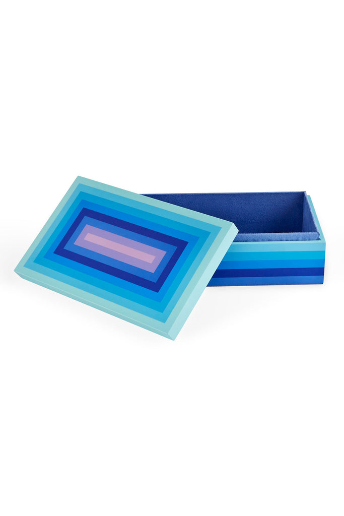 Featuring 60s inspired concentric squares in high-gloss blues and lavenders, the hand-finished Scala lacquer stacking boxes are chic on your shelf, mantel, or tablescape. Available in three sizes for stashing, stacking, or making a stand-alone statement.