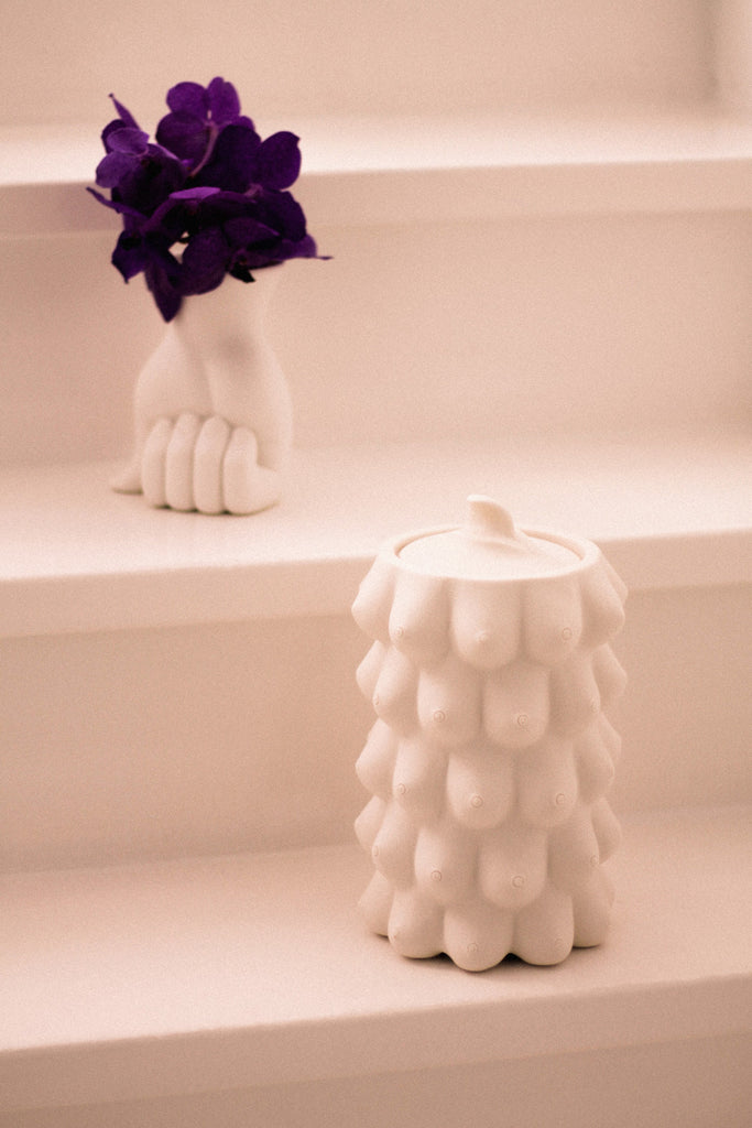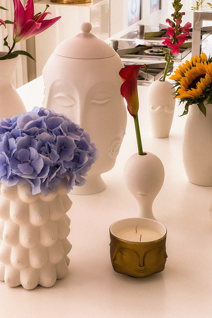 An eye-catcher with a bold motif, the Georgia Cookie Jar shakes up your countertop. Inspired by American artist Georgia O'Keeffe, wife and muse of art dealer and renowned photographer Alfred Stieglitz.