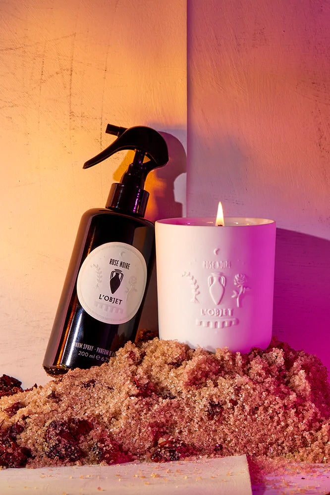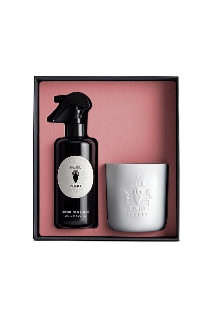 Includes a scented candle in a porcelain vessel and aromatic spray scented with a velvety mix of exotic roses, delicately contrasted by Ceylon tea.