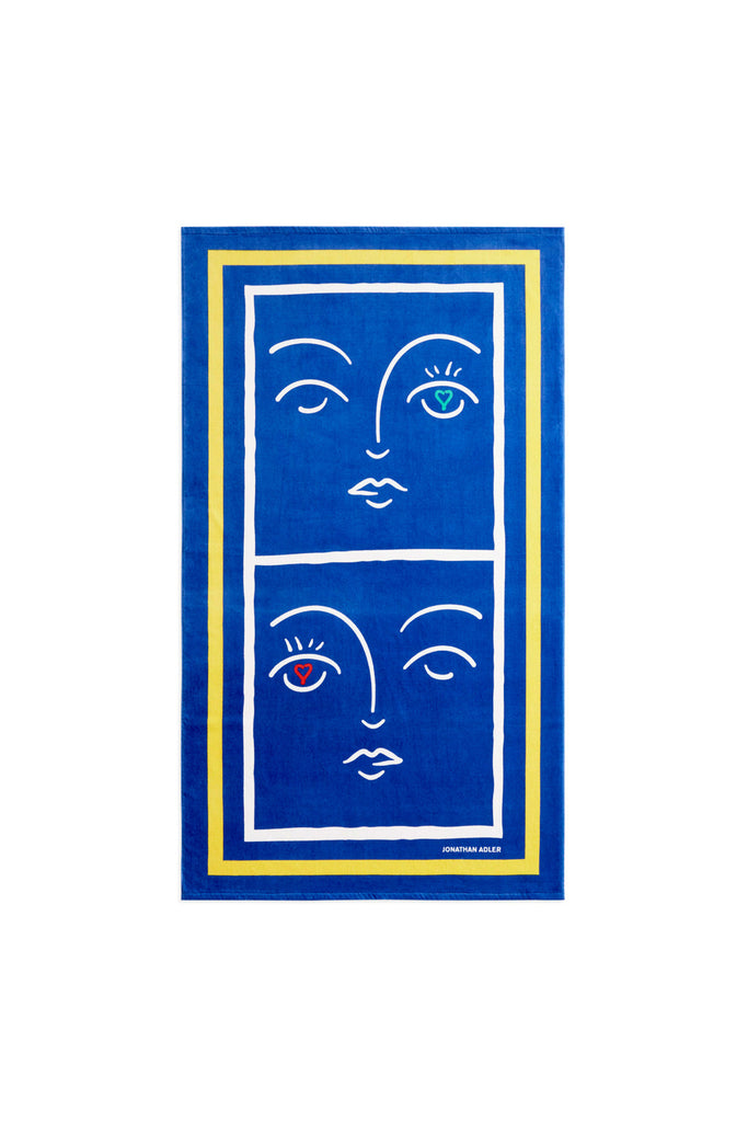 Channel the spirit of resort glamour with the generously sized, thick and thirsty beach towels. Get twice the looks with two of the signature Muse visages on a bold jewel-toned blue background. White sand beach to infinity pool, they look as good draped across a chaise lounge as they do wrapped around your shoulders.