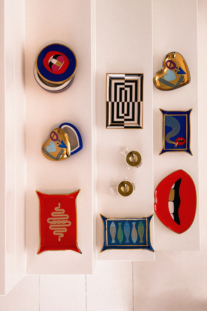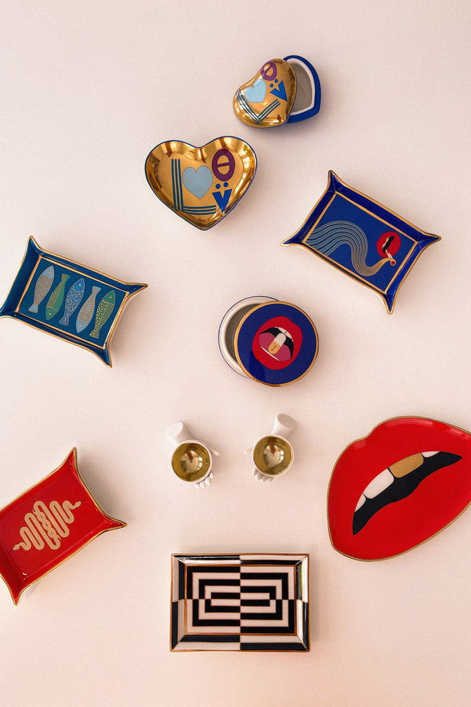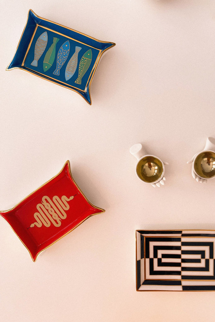 Modernist and mind-bending, the Op Art dishes and catchalls give your tablescape a gilded and graphic edge. Crafted from high-fired porcelain with solid gold accents and packaged in a nifty gift box, they make a perfect hostess present (or pick-me-up for yourself).